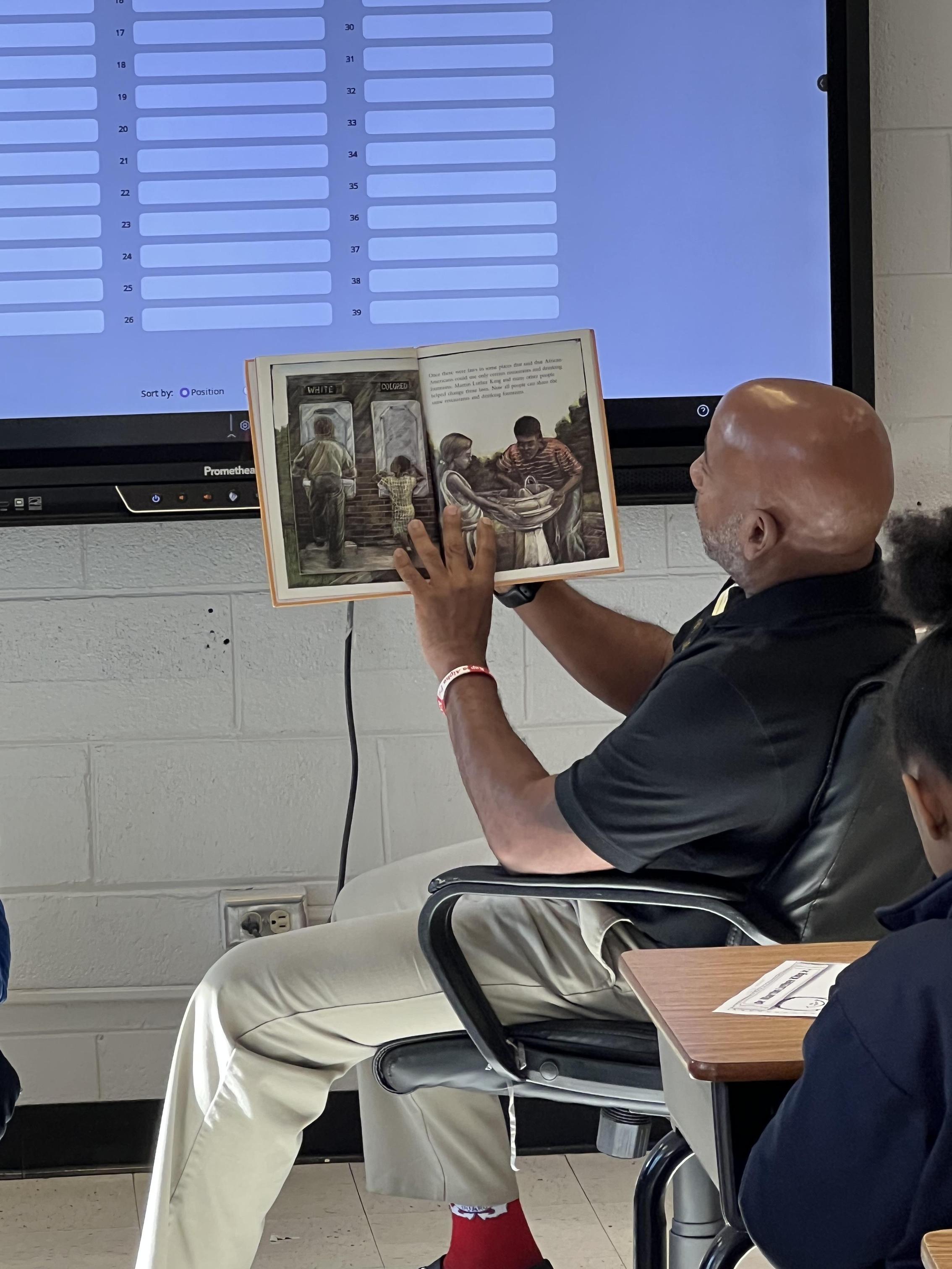 Students remained actively involved as Mr. Brown and Mrs. Baker asked thoughtful questions and invited them to read along. The conversation explored Dr. King’s contributions in depth, highlighting how his fight for equality helped create a society rooted in unity and mutual respect, where people are recognized as equals.