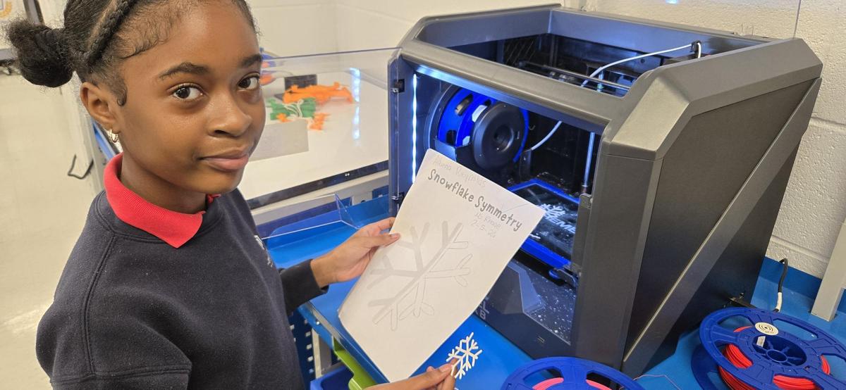 Fifth grade scholars at The Main Street Academy (TMSA) participated in a hands-on learning experience connecting mathematics with technology and creative design. As part of their classroom instruction, 5th grade students explored the concept of symmetry by developing original designs and transforming them into three-dimensional objects.